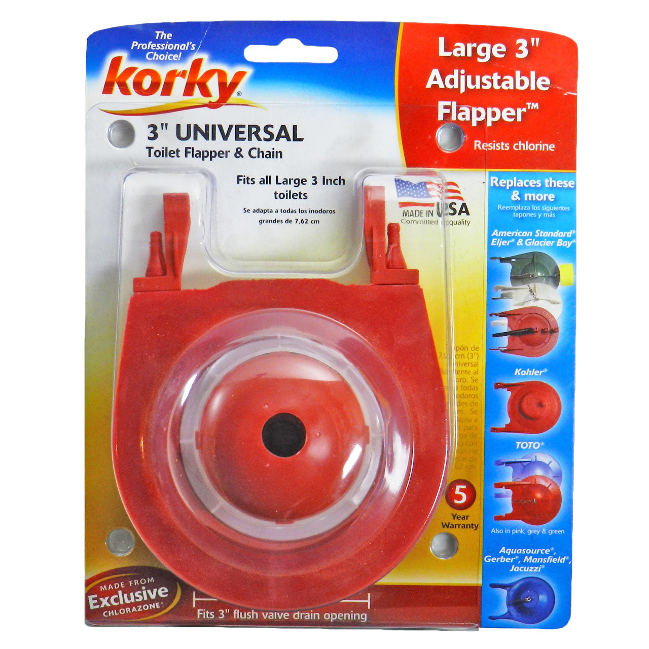 The most universal toilet flapper. It is made with the longest lasting material on the market. The Korky flapper is easy to install. Available in a variety of styles and sizes.