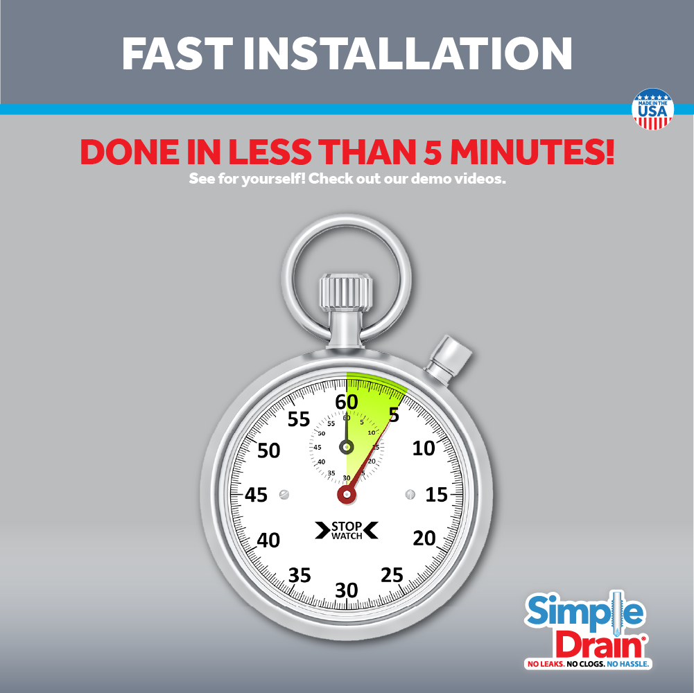 That’s it. Simple Drain is the fastest, easiest P-trap you’ll ever install, and its self-plunge mechanism eliminates future clogs without any hassles or leaks!